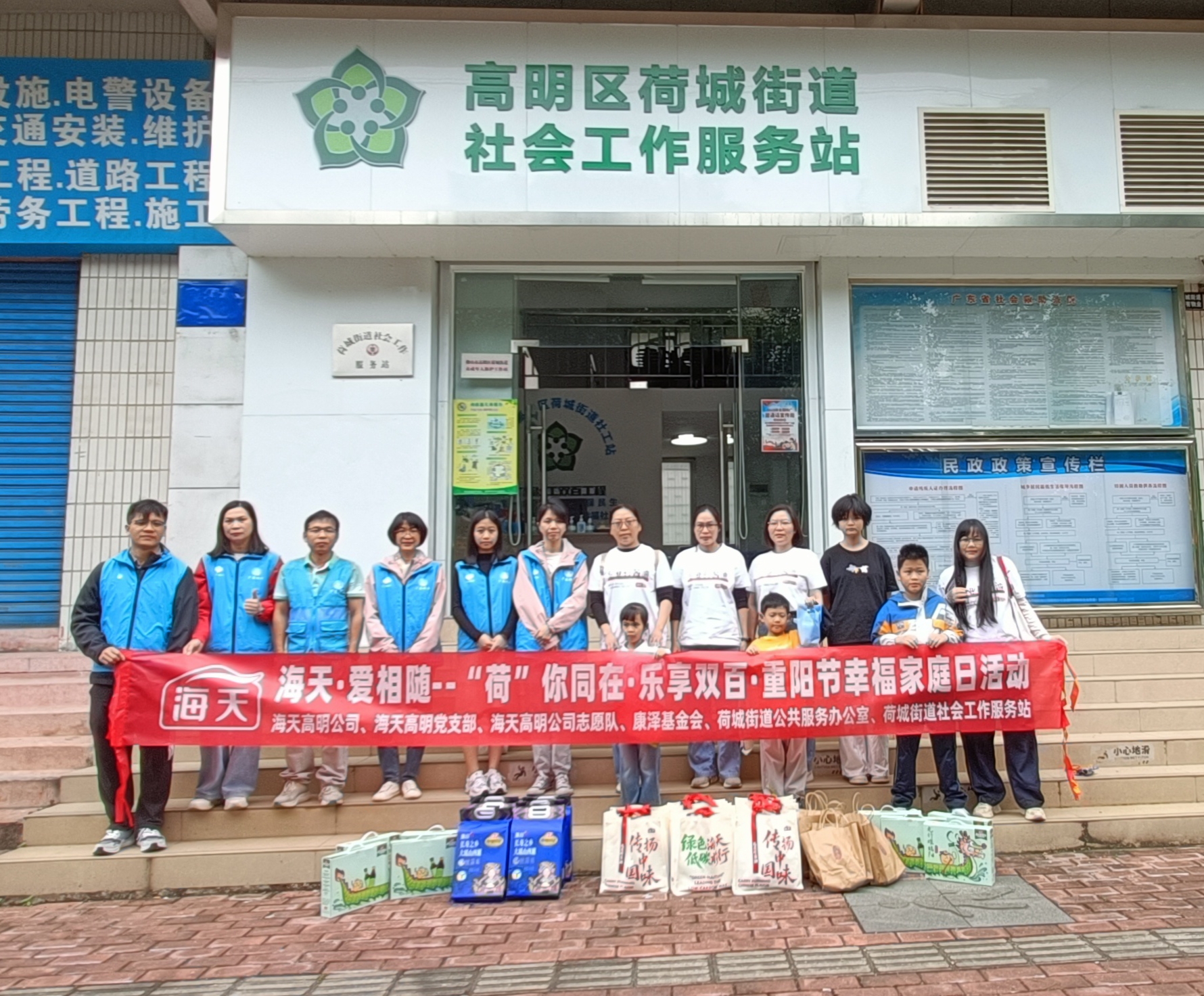 广东佛山海天高明公司志愿服务队的志愿者和小小志愿者们,在荷城街道公共服务中心的支持下,和双百社工站的社工一起上门慰问、服务社区中的长者,与长者亲切交流,并帮忙打扫卫生,并帮老人检查厨房中的调味品、食品有没有出现保存不当、过期变质的情况,并向长者们科普健康饮食知识。
