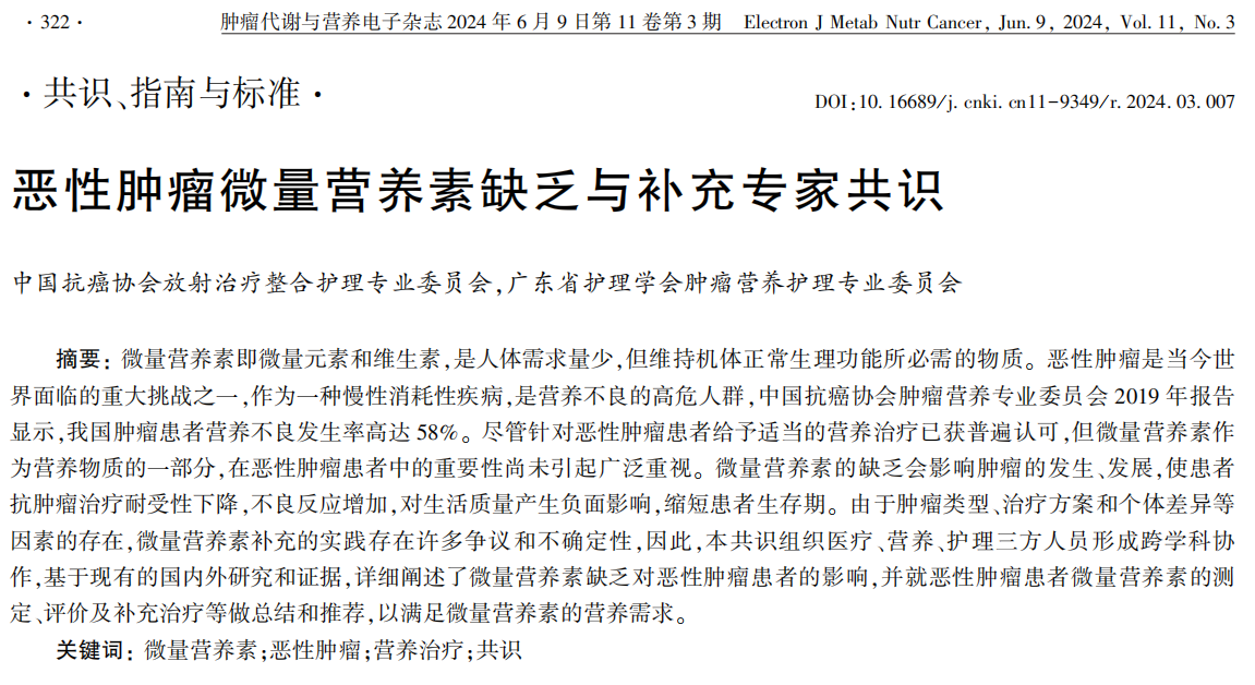 同时,我国肿瘤患者营养不良率高达58%,而包括铁、硒在内的多种微量营养素和维生素对于肿瘤患者的康复都有积极作用,但尚未引起广泛重视。