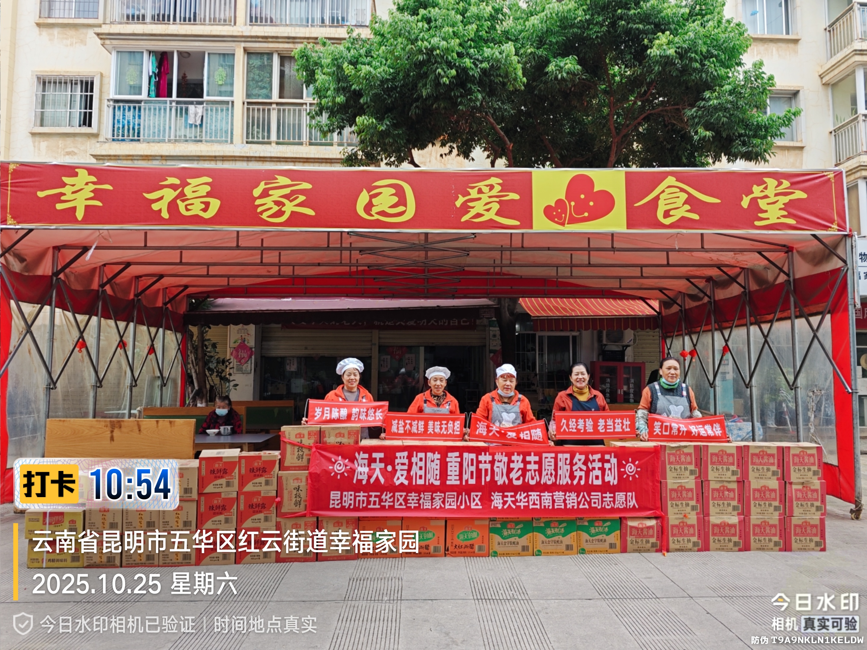 在湖北武汉,海天华中营销公司志愿队携手湘菜大师开展慰问关怀服务,并亲自下厨为长者们烹饪了营养健康餐,还给长者送上了鲜花以示祝福。